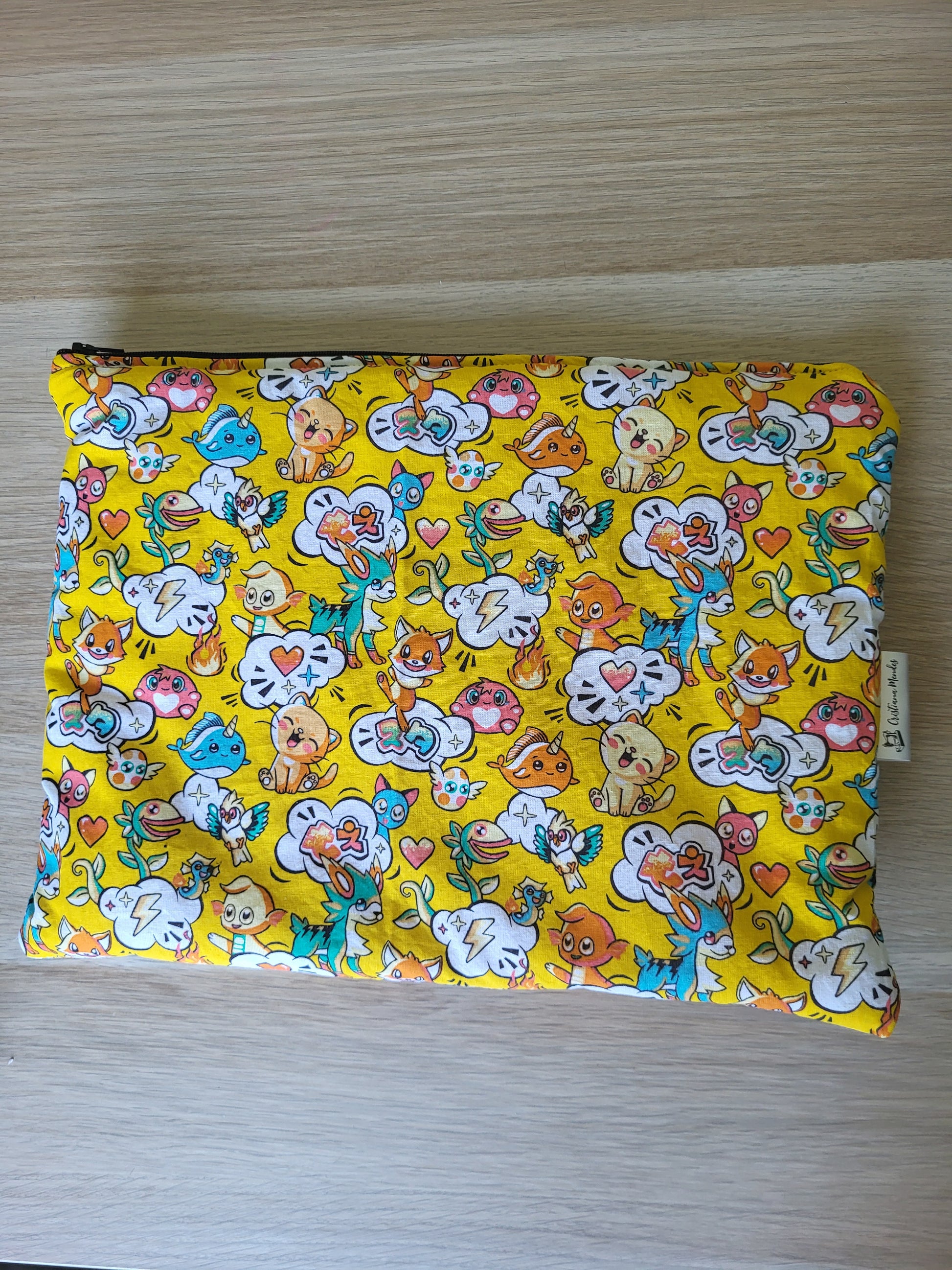 Cette grande pochette confectionnée avec soin se distingue par ses jolis motif de dessin animé. Douce et matelassée, elle protège vos effets personnels dans votre quotidien. Son format généreux est idéal pour ranger un livre, une tablette, des documents ou vos essentiels de voyage. Pratique, elle s’adapte à toutes vos envies : housse de rangement, pochette de voyage ou compagnon élégant de tous les jours.